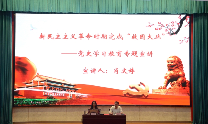 為全面了解黨的發展歷程,從百年精神譜系中汲取奮進新征程的偉力,我校于6月24日在圖書館A報告廳舉辦黨史學習教育專題報告會黨史學習教育省委宣講團成員、省委講師團副團長肖文婷作題為《新民主主義革命時期完成“救國大業”——黨史學習教育專題宣講》報告。校領導班子成員、全校處級干部、各黨支部書記、輔導員、馬克思主義學院教師以及學校各民主黨派主委,校知聯、僑聯、留聯會等統戰團體負責人參加學習會議由黨委副書記劉建中主持。