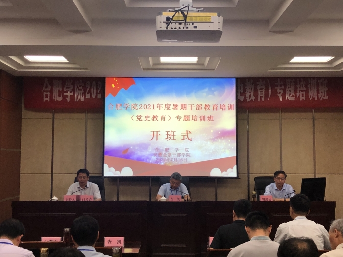 為進一步推動我校黨史學習教育取得新成效,教育引導廣大干部深入學習領會習近平新時代中國特色社會主義思想,7月16日,合肥學院2021年度干部教育培訓(黨史學習教育)專題培訓班在安徽金寨干部學院正式開班。學校各教學院系、機關職能部門處級干部共計52人參加培訓,開班儀式由校黨委委員、組織部部長白義香主持,校黨委委員、紀委書記、監(jiān)察專員查凱出席開班儀式并作動員講話。