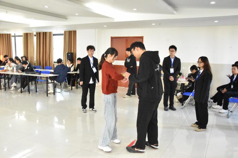 當(dāng)天上午7 30 分,工作人員在大學(xué)生活動中心集合,前往指定位置等待參賽選手入場。830分,參賽選手在工作人員引導(dǎo)下有序就坐,主持人講解復(fù)賽相關(guān)規(guī)則,宣布比賽正式開始。