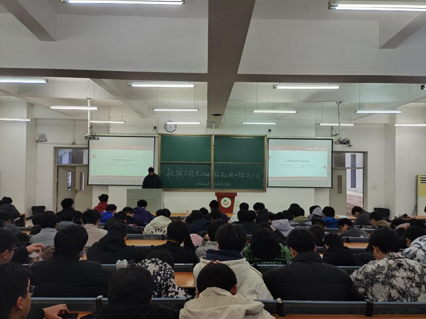 本次分享會邀請到了優秀校友南京航空航天大學研究生葛文祥、合肥工業大學研究生馬海亭兩位學長做專題交流。兩位校友憑借在各自學業道路上積累的豐富經驗,為現場的同學們帶來了干貨滿滿的專題分享。他們從大學生職業生涯規劃出發,結合自身經歷,詳細闡述了如何在大學期間合理規劃學業,為未來的職業發展打下堅實基礎。在學業發展提升方面,分享了高效的學習方法、科研項目參與經驗以及如何利用大學資源提升自己。對于機制機電專業認知提升,他們深入剖析專業內涵,介紹行業前沿動態,讓同學們對所學專業有了更清晰的認識。在考研考公深造方面,校友們分享了備考經驗、院校選擇技巧以及深造后的職業發展路徑,為有深造意向的同學指明方向。