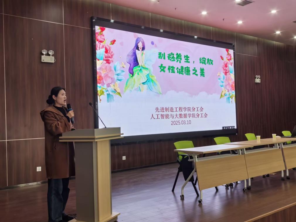 春風(fēng)和煦,芳華綻放。在第115個(gè)“三八”國際婦女節(jié)之際,先進(jìn)制造工程學(xué)院、人工智能與大數(shù)據(jù)學(xué)院分工會(huì)3月10日下午在55棟205室報(bào)告廳,聯(lián)合開展了以“刮痧養(yǎng)生,綻放女性健康之美”為主題的“三八”婦女節(jié)活動(dòng)。活動(dòng)邀請(qǐng)合肥第一人民醫(yī)院濱湖醫(yī)院中醫(yī)護(hù)理科主任鄭國華、醫(yī)師張茜茜擔(dān)任主講人,先進(jìn)制造工程學(xué)院、人工智能與大數(shù)據(jù)學(xué)院、設(shè)計(jì)學(xué)院、城市建設(shè)與交通學(xué)院等學(xué)院的女性教職員工聆聽講座,活動(dòng)由先進(jìn)制造工程朱江老師主持。