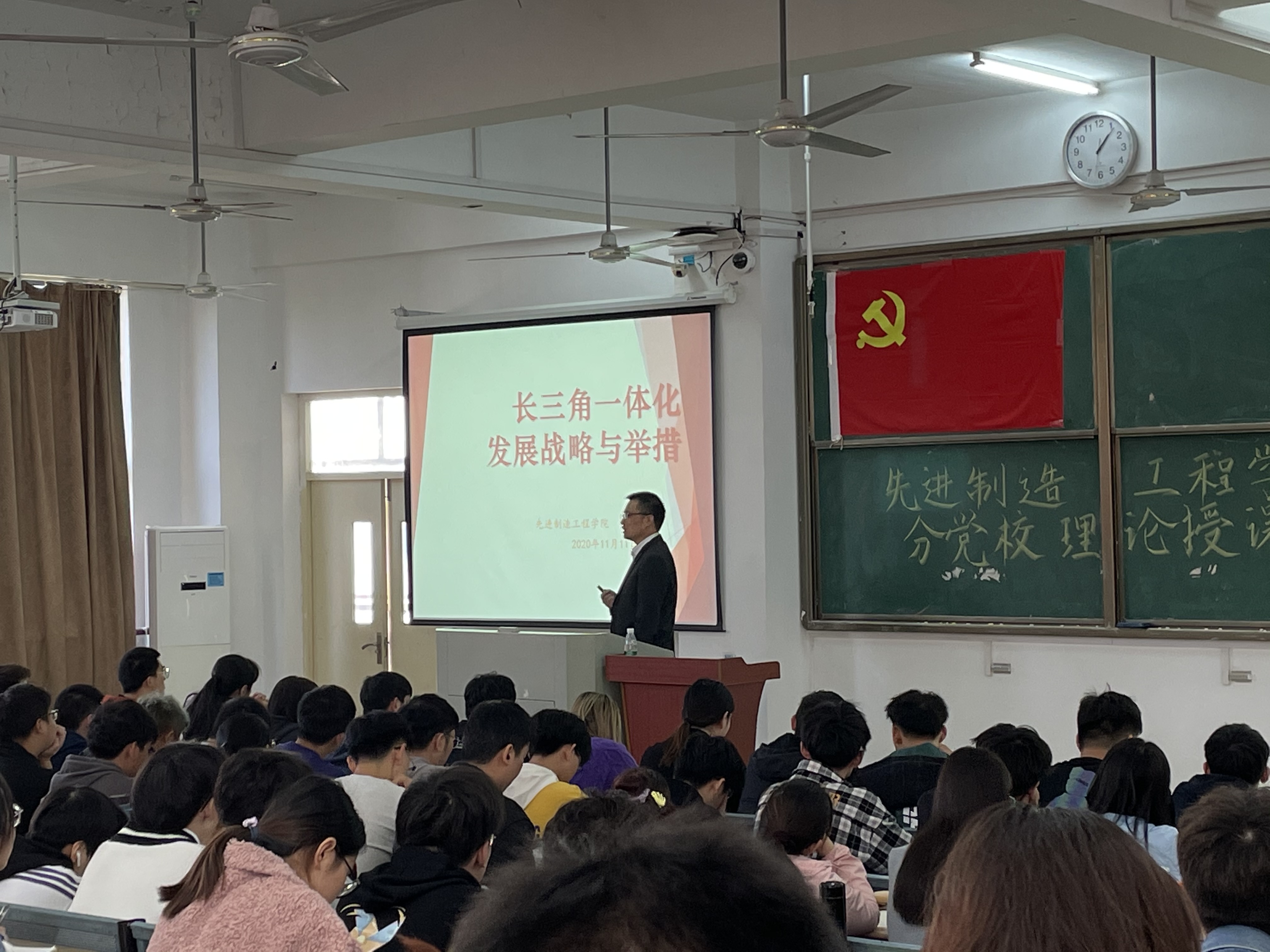 2020年11月11日,先進制造工程學院分黨校第一期入黨發展對象集中培訓班第五講在38棟3階梯教室順利進行。本次理論授課的主題是“黨引領下的長三角一體化發展戰略與舉措”,培訓班邀請到先進院黨委副書記、先進院院長呂剛教授擔任主講人。
