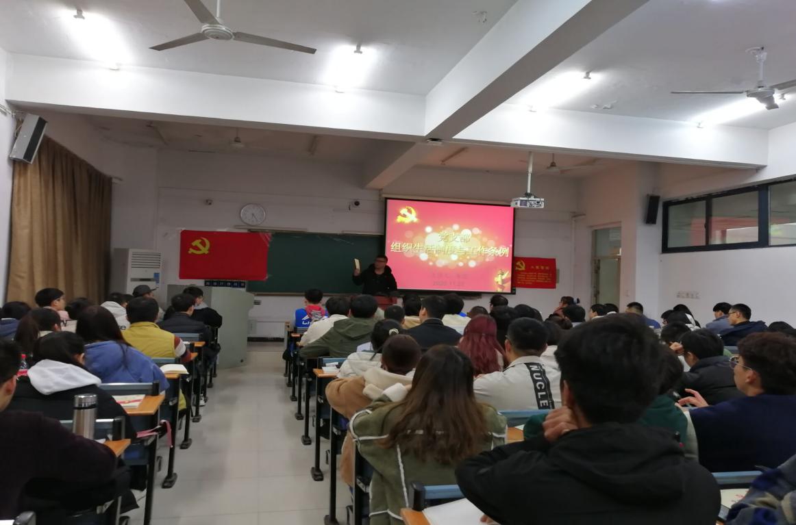 隨后,宋老師依照《中國(guó)共產(chǎn)黨支部工作條例》,圍繞黨支部組織生活進(jìn)行了詳細(xì)講解。其中,重點(diǎn)提到“三會(huì)一課”,并通過(guò)流程圖形式,具體講述了支部委員會(huì)、支部黨員大會(huì)、黨小組會(huì)以及黨課的程序、主要內(nèi)容以及時(shí)間要求等,直觀地向?qū)W員們展示了每個(gè)環(huán)節(jié)與流程所包含的內(nèi)容。此外,宋老師還講到了民主生活會(huì)、民主評(píng)議黨員、工作報(bào)告和總結(jié)工作等重要內(nèi)容,他強(qiáng)調(diào)作為基層黨組織,應(yīng)將組織生活落在實(shí)處,絕對(duì)不能流于形式,例如組織生活會(huì)中的批評(píng)與自我批評(píng),真正做到“紅紅臉,出出汗”。