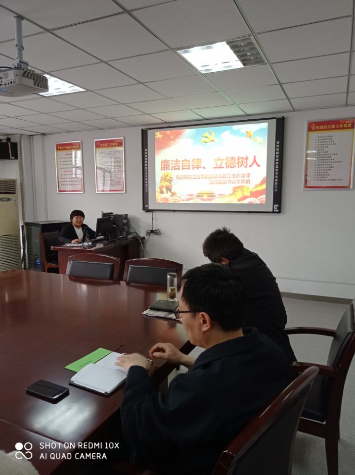 3月30日下午2:00在38棟會議室先進制造工程學(xué)院黨委副書記李秀娟給自動化教工黨支部講了主題為“廉潔自律 立德樹人”的黨課。本次活動由支部書記孫強主持,支部全體黨員參加。