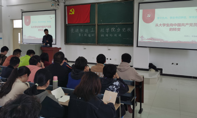 2021年4月8日中午,先進制造工程學院第三期分黨校第四次理論授課于38棟3階梯教室召開。本次課程由校紀委宋海峰書記進行授課,全體入黨積極分子參加了本次授課。