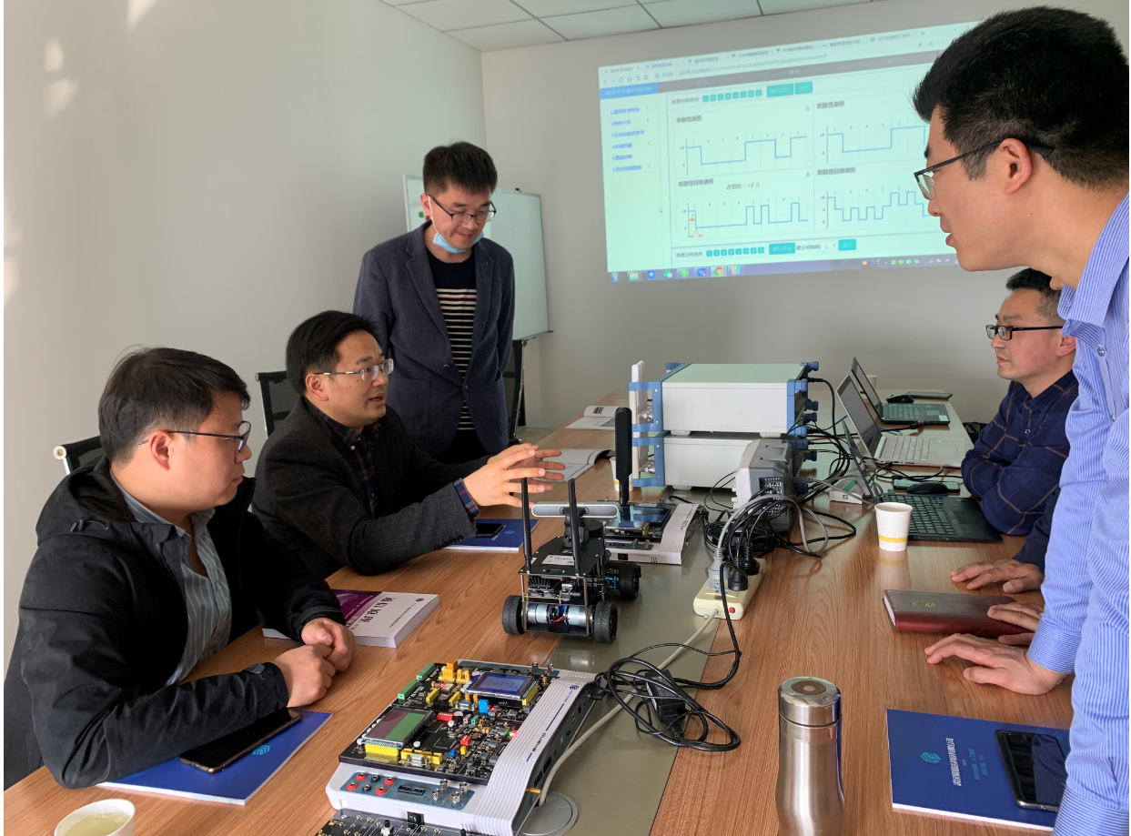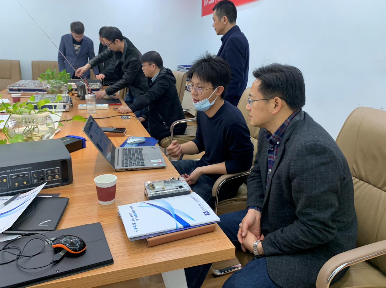 4月15日上午9:00,胡國華主任一行來到武漢凌特電子技術有限公司,武漢凌特市場部劉經理、裴經理帶領調研組參觀了公司的各個部門,包括研發部、測試部、市場部等等,同時觀看了公司的亮點產品,包括5G的核心設備等等。參觀完成后,武漢凌特技術總經理沈總詳細介紹了公司的成立歷程,結合公司研發經驗和成果,對高校的實踐教學提出了一些建設性意見,同時從企業產品研發和生產的角度理解工程教育認證體系,提出學生創新能力的培養不能僅僅只靠點滴知識的堆積,更依賴學生對整體框架結構和知識體系的積累,胡國華一行對于公司的熱情接待表示感謝,同時感受頗深,受益匪淺。隨后,凌特公司的三名工程師結合專業實驗室建設的需求分別介紹和演示了相關設備,包括5G仿真軟件仿真平臺、軟件無線電平臺、通信原理實驗箱和高頻電路實驗箱,工程師對設備的優點進行了詳細的介紹,同時老師也對設備操作和調試提出了一些問題,工程師給予了現場演示。