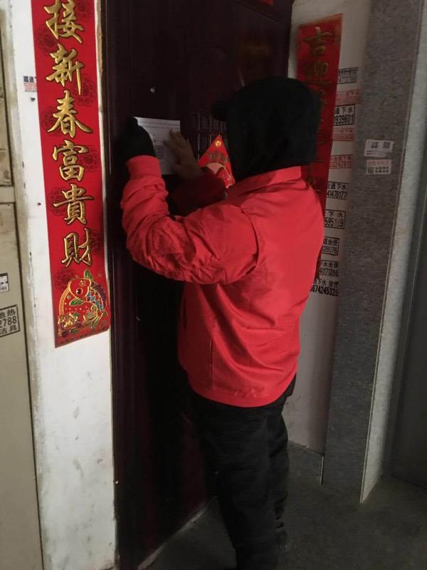 2017網絡工程專業方蕓和村內的黨員志愿者一起在村內進行宣傳和勸導