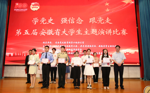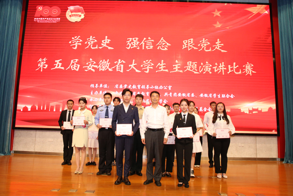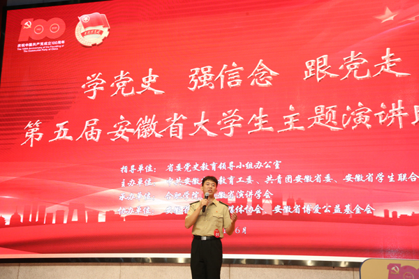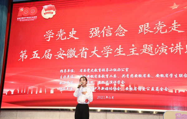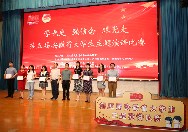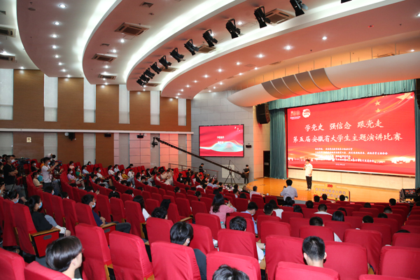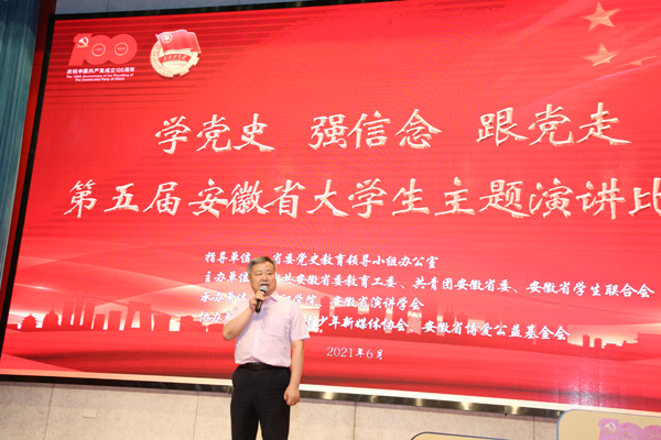 6月17日,“學黨史 強信念 跟黨走”第五屆安徽省大學生主題演講比賽決賽在合肥學院舉行,省委宣傳部部務會成員、省文明辦主任楊明世,團省委副書記胡靖,合肥學院黨委副書記劉建中,以及黨史學習教育省委第十三巡回指導組、團省委、省委教育工委、合肥學院相關部門負責同志,合肥學院師生代表共計160余人現場觀摩。