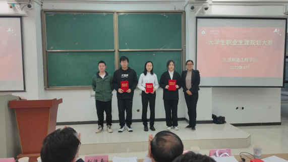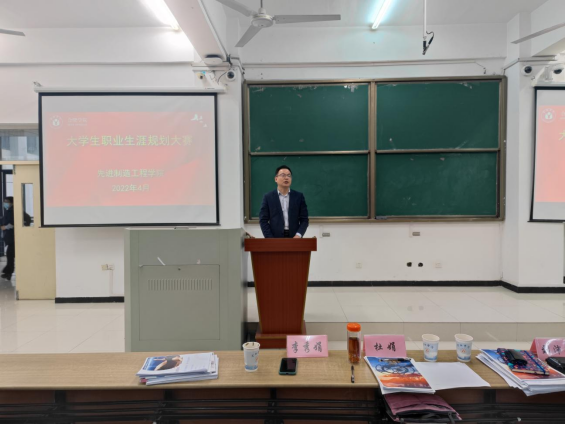 為了幫助學生明確自身職業目標,進一步增強我院學子求職能力,先進制造工程學院于2022年4月28日在38棟3階梯教室舉辦了首屆大學生職業生涯規劃大賽。校友辦陳昌躍主任、大學生創新創業中心劉沛平主任、校團委李妍妍副書記、學生處就業指導中心鄭國平副主任,先進制造工程學院黨委書記杜娟書記出席擔任評委。學生處副處長張應杰、先進制造工程學院黨委副書記李秀娟書記、學院各輔導員應邀參加。