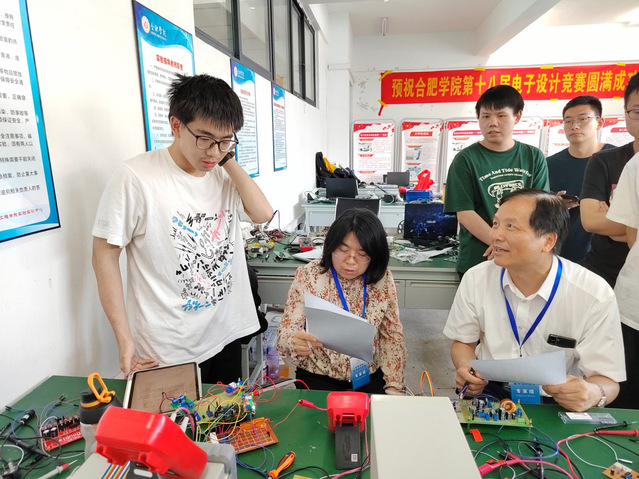 今年的合肥學院院賽已是十八屆。每一屆比賽都歷經筆試、預賽、決賽環節,階段性培訓貫穿始終。指導教師團隊一如既往利用工作之外時間為學生指導答疑,上屆學長也熱心分享經驗,形成了良好的傳承風氣。參賽選手經層層選拔和磨練,不斷充實知識,提高能力,表現出了堅持不放棄的拼搏精神。在第四天的評測驗收環節,評委和同學們共同探討,發現問題和解決問題,名次不再重要,改進創新、提升工程實踐能力成為最重要的收獲。相信在即將到來的安徽省大學生電子設計競賽中,我院參賽團隊都能夠取得滿意的成績!