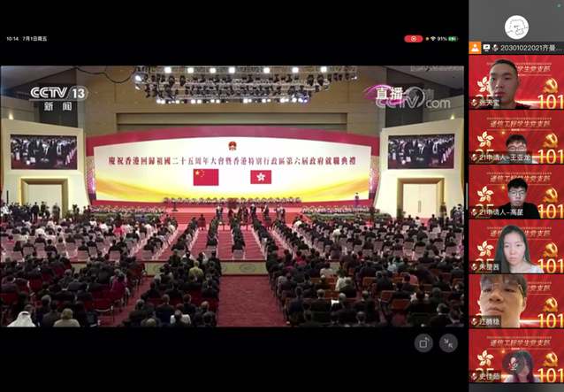 風起南海之濱,潮涌香江兩岸。今天是中國共產黨成立101年,也是香港回歸祖國的25周年。二十五載櫛風沐雨,二十五載春華秋實。25年風雨歷程充分證明“一國兩制”的實際意義。“一國”是根,根深才能葉茂;“一國”是本,本固才能根深。為一步學習紅船精神、慶祝香港回歸祖國25周年,通信工程學生黨支部以黨小組為單位于2022年7月1日上午9:00線上召開觀看香港回歸祖國25周年大會學習活動,同時各申請人積極參與。
