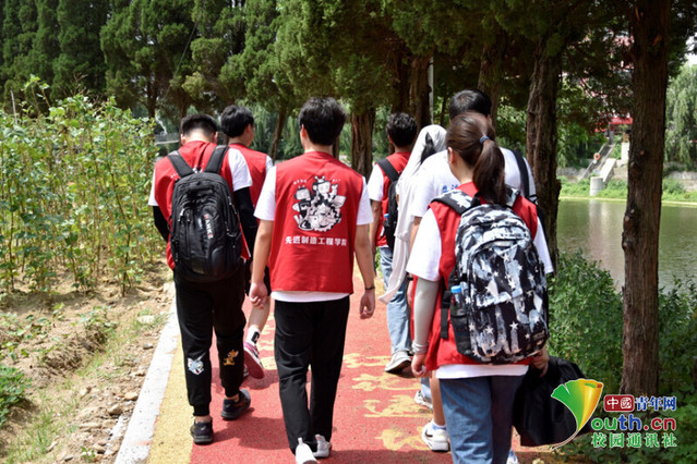 圖為調研團隊成員走“斑竹滿園,紅花遍地”將軍步道前往立夏節起義紀念園。中國青年網通訊員 江晨陽 攝