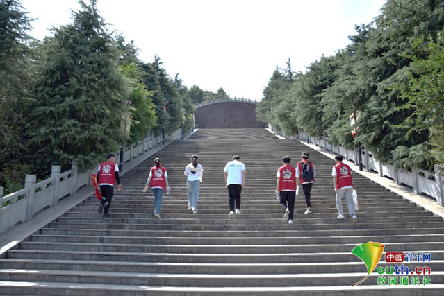 圖為調(diào)研團(tuán)隊(duì)成員正走在代表著金寨這塊紅色的土地上走出的59位開國(guó)將軍的59級(jí)臺(tái)階上 中國(guó)青年網(wǎng)通訊員 江晨陽(yáng) 攝