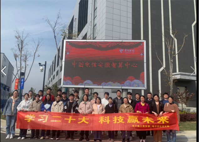 為貫徹落實二十大精神,電子信息工程學生黨支部于328日下午,與電子信息工程教工黨支部一起前往安徽省電信公司開展聯合活動。通過參觀學習中國電信安徽省智算中心的展廳和機樓,進一步激發了支部全體成員的責任感和使命感,更加深刻領會黨的二十大的深刻內涵。