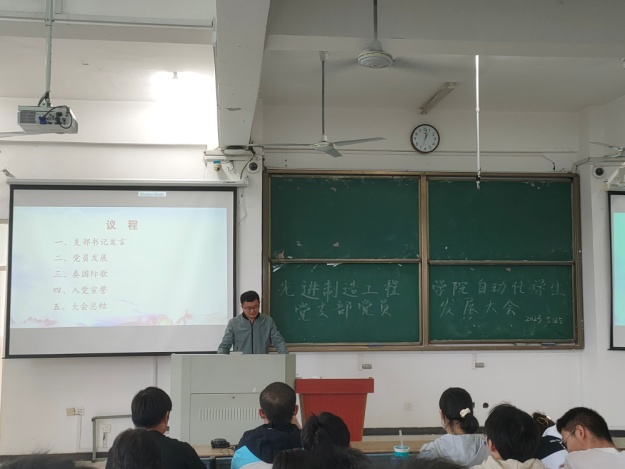 2023年5月23日中午,自動化學生黨支部“2023年上半年預備黨員發展大會”在支部書記梅志強老師的組織下,于我校38棟3階梯教室成功舉行,參加此次會議的有支部全體學生黨員以及多名群眾代表。
