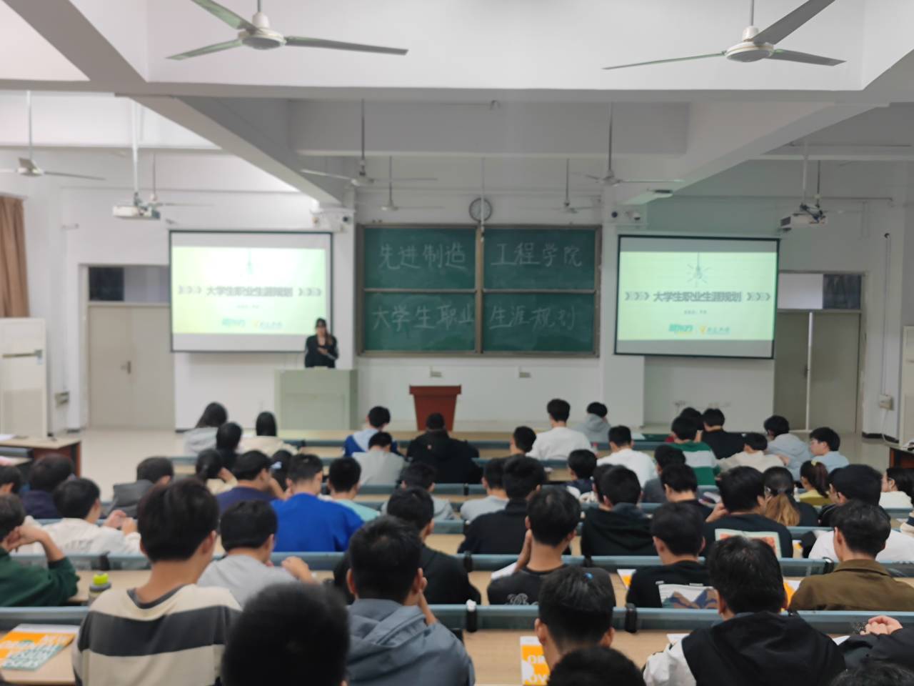 為增強(qiáng)大學(xué)生就業(yè)指導(dǎo)課程教學(xué)實(shí)效性,追求實(shí)用高效的就業(yè)指導(dǎo)效果,切實(shí)提高教學(xué)質(zhì)量,10月25日晚,先進(jìn)制造工程學(xué)院于37棟1階梯教室組織企業(yè)進(jìn)課堂開(kāi)展大學(xué)生職業(yè)生涯規(guī)劃講座,特邀新東方羅妍老師前來(lái)宣講,我院部分學(xué)生積極參加本次活動(dòng),輔導(dǎo)員張傲老師全程參與聽(tīng)講。