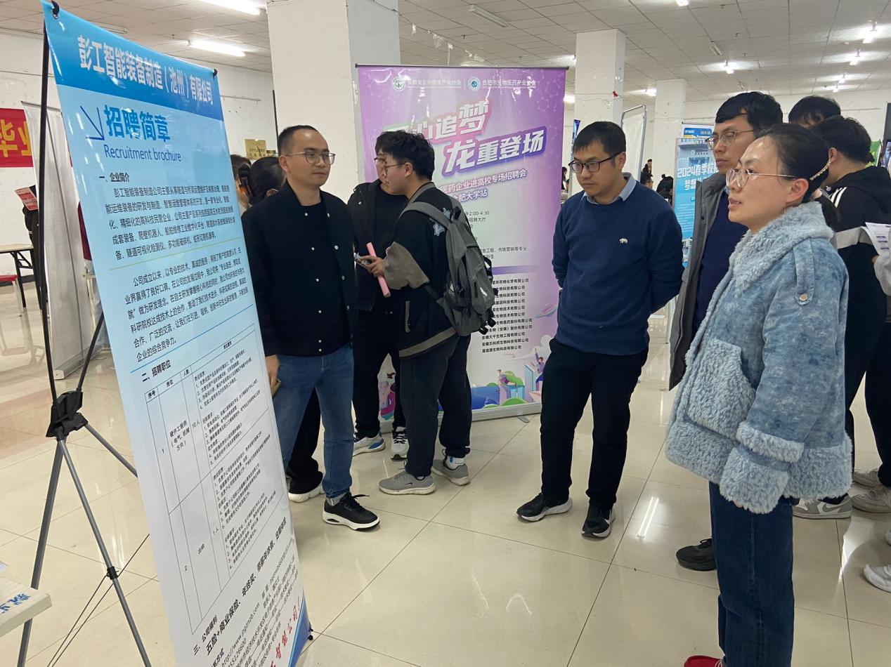 為加強與用人單位的聯系和交流,準確把握企業用人需求,提高就業率,推動院地、院企合作,幫助企業尋找高新科技人才,2024年3月15日下午,先進制造工程學院于圖書館一樓舉辦池州經開區專場招聘會。本次招聘會是我院與池州經開區進行人才對接招聘,包括池州莫新機電科技有限公司、恒峰銳(池州)智能裝備有限公司、華宇半導體有限公司、彭工智能裝備制造(池州)有限公司、池州天賜高新材料有限公司等線上線下共10余家招聘單位,招聘需求涉及我院多個專業,為我院畢業生提供就業崗位39個,235個人才需求。我院黨委副書記蔡靈美、學工辦主任劉罡、畢業班輔導員、專業班主任及部分畢業生參加招聘會。