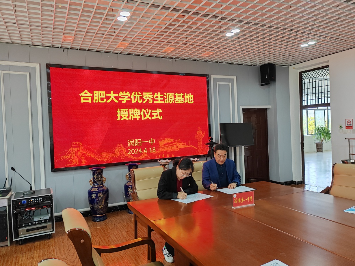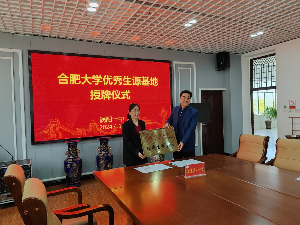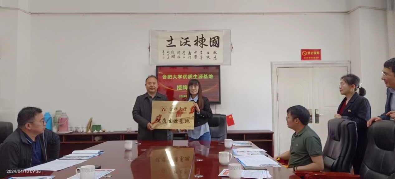 為進一步提升我校優質生源,417日至18日,先進制造工程學院聯合經濟與管理學院開展優質生源地共建、簽約、掛牌。先進制造工程學院副書記蔡靈美、經濟與管理學院副院長于娜、經管學院骨干教師潘娣、電子信息工程系主任張勝、智能制造專業主任金飛翔等一行人員前往渦陽縣第一中學、渦陽縣育萃中學兩所優質生源地進行簽約、掛牌。優質生源基地學校領導對合肥大學一行人員來訪表示熱烈的歡迎。蔡靈美副書記和于娜副院長對優質生源基地學校長期以來對我校發展的支持及輸送了一批批優秀學生表示衷心感謝。