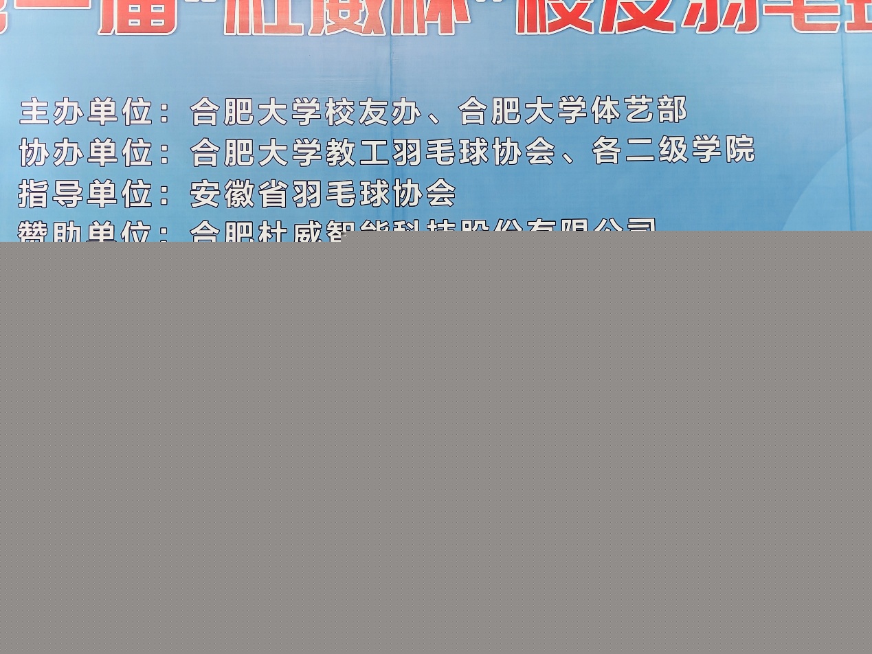 5月18日上午,合肥大學第一屆“杜威杯”校友羽毛球邀請賽于二期體育館順利舉行。本次比賽由合肥大學校友辦、合肥大學體藝部主辦,合肥大學教工羽毛球協會及各二級學院承辦,共計16支隊伍參賽。此次比賽先進制造工程學院高度重視,精心組織,全程做好服務工作,確保比賽順利進行。