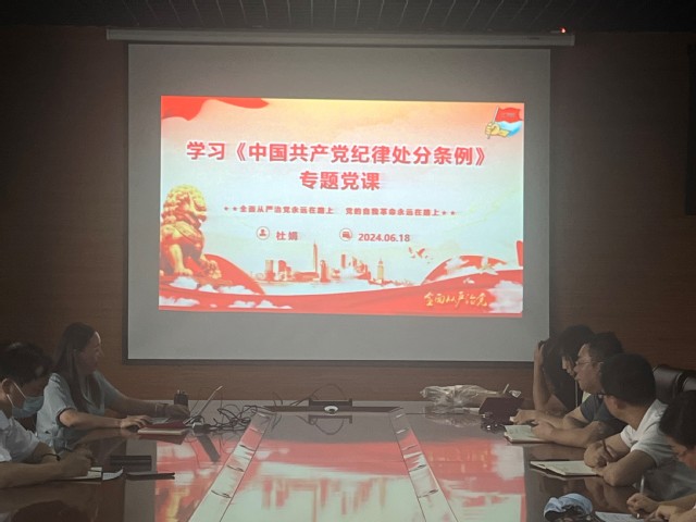 杜娟從《中國(guó)共產(chǎn)黨紀(jì)律處分條例》(以下簡(jiǎn)稱《條例》)的修訂背景和主要過(guò)程、重要意義、新修訂的《條例》的特點(diǎn)、學(xué)習(xí)貫徹新修訂的《條例》的內(nèi)容和要求等方面作了詳細(xì)闡述,指出了開(kāi)展黨紀(jì)學(xué)習(xí)教育的目標(biāo)任務(wù)和具體措施,并進(jìn)行案例分析。她號(hào)召全體黨員以黨紀(jì)學(xué)習(xí)教育為契機(jī),做到學(xué)紀(jì)、知紀(jì)、明紀(jì)、守紀(jì),進(jìn)一步強(qiáng)化紀(jì)律意識(shí)、加強(qiáng)自我約束、提高免疫能力,增強(qiáng)政治定力、紀(jì)律定力、道德定力、抵腐定力,不斷提升黨支部的創(chuàng)造力凝聚力戰(zhàn)斗力。