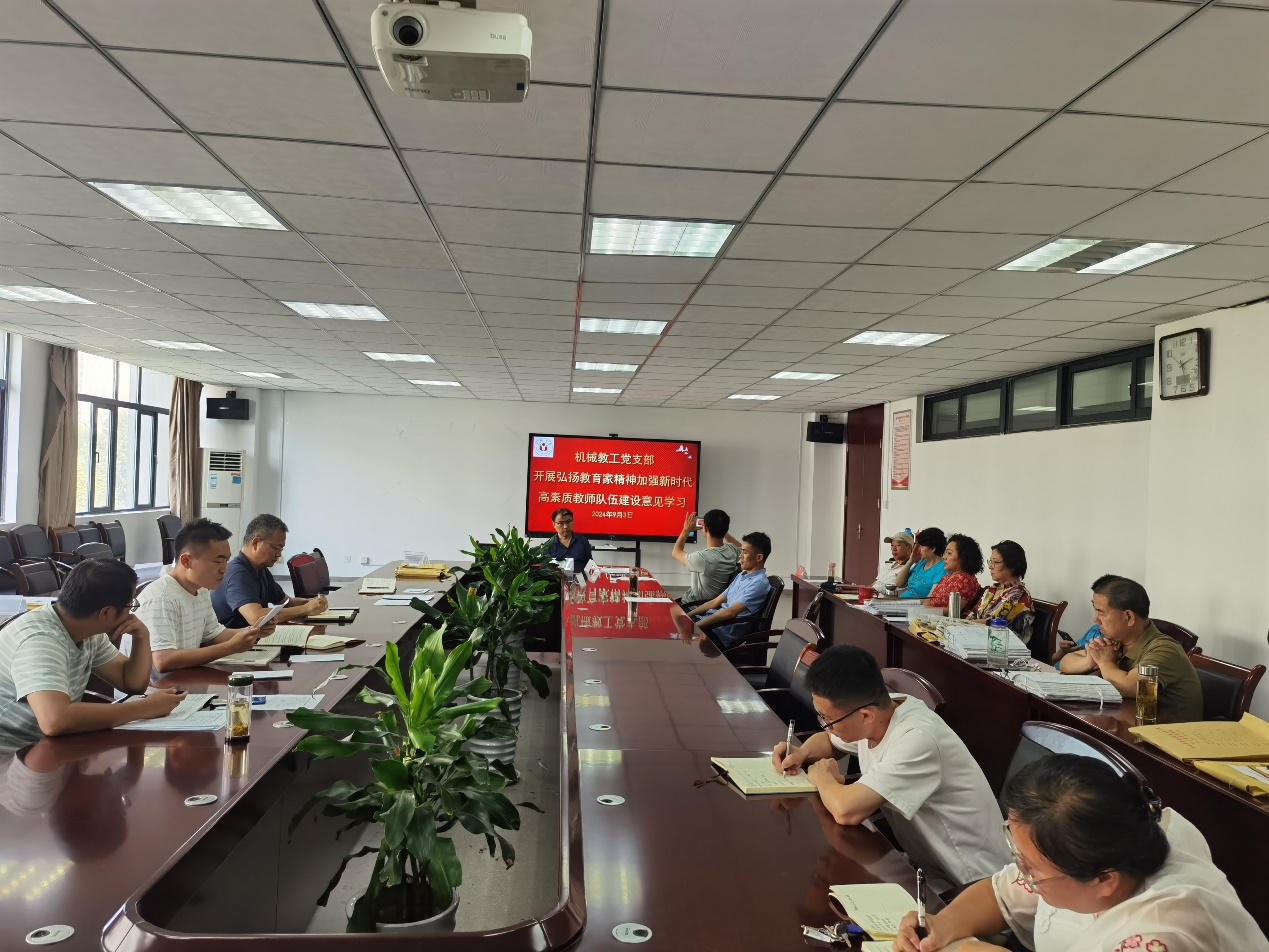 9月3日下午,機械工程系教工黨支部全體黨員和教師在40-305會議室,開展了《中共中央 國務院關于弘揚教育家精神加強新時代高素質專業化教師隊伍建設的意見》集中學習。