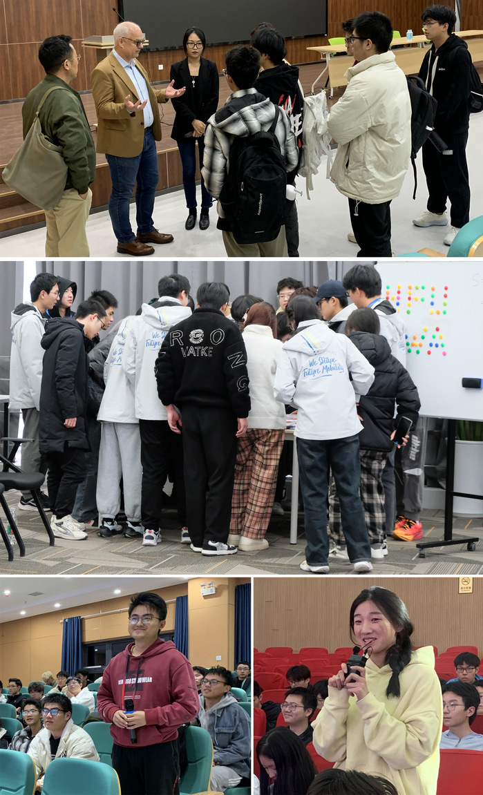 2023-2024學年第一學期,大眾學院聯合大眾安徽舉辦了5次企業客座教授理論授課與認知實習活動。學??妥淌凇⒋蟊姲不帐紫瘓绦泄俑鹜铉C博士、首席財務官哈約根博士、首席技術官呂爾曼博士、首席數字官高樂夫先生和首席制造官施耐德先生,為學生進行精彩授課。