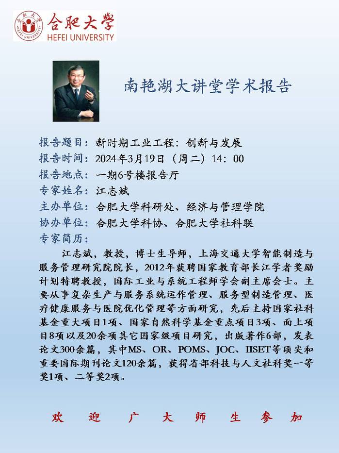 【南艷湖大講堂】新時期工業工程:創新與發展