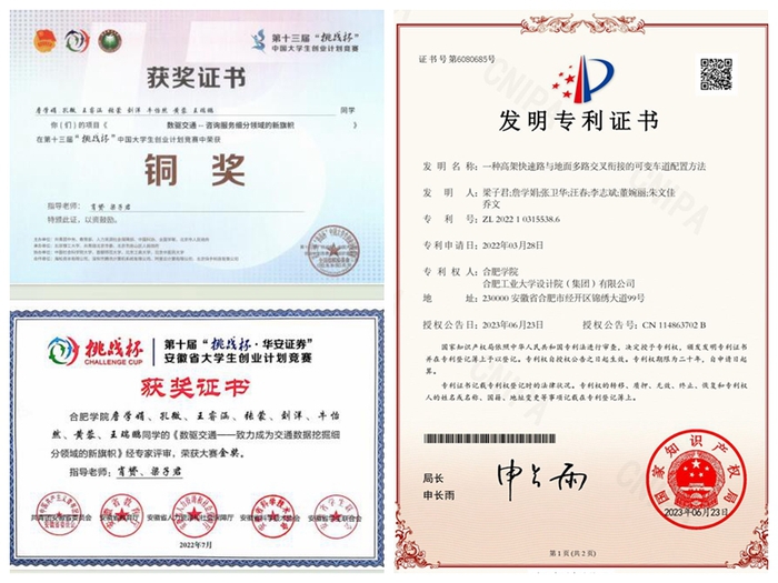 詹學娟積極參加各種學科競賽,連續三年在“挑戰杯”等比賽中獲得佳績,共獲國家級獎項1次、省級獎項3次。2022年3月,隨著第十三屆“挑戰杯”中國大學生創業計劃競賽拉開序幕,詹學娟與團隊成員通過聚焦交通數據挖掘分析細分領域,在交通規劃設計服務、城市交通數據挖掘應用服務和交通運輸物流服務三大領域形成細分市場,為政府、交通規劃院和交通企業三個維度提供交通數據挖掘分析、交通仿真可視化展示和方案編寫等交通咨詢服務,對于銜接傳統的交通工程咨詢服務行業、促進智慧交通項目順利實施和滿足我國交通強國戰略目標達成具有重大意義。12輪精細化打磨,超50余次商業計劃書和PPT修改,答辯10余次,最終比賽歷時6個月,一路突出重圍,以作品《數驅交通-致力成為交通數據挖掘細分領域的新旗幟》獲得國賽銅獎!在一次次比賽過程中,她不斷積累與科研相關的大量實踐經驗,提升自身的專業素質,為以后的科研發展打下堅實的基礎。