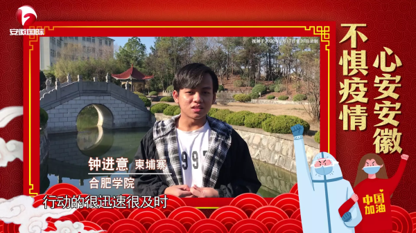 In mid-February, two HFU international students said in a video interview with Anhui TV International Channel,Chinese government has taken timely and effective measures to fight against COVID-19. Cheer for China!”