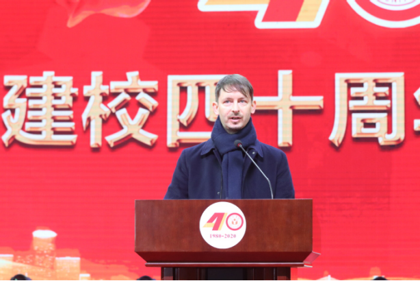 Yu Aihua, Secretary of Hefei Municipal Party Committee, extends his congratulations to all the staff, students and alumni at home and abroad on behalf of Hefei Municipal Government. He says that over the past 40 years, Hefei University has always adhered to its guideline of “Localization, Application, and Internalization”.