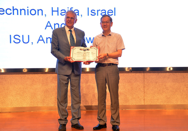 On September 21st , Professor Danieres Shekhtman, the 2011 Nobel Prize winner(Chemistry), is invited to give a lecture on “scientific innovation” at HFU and Professor Wang Qidong, president of HFU, awards him the “Honorary Professor” certificate.