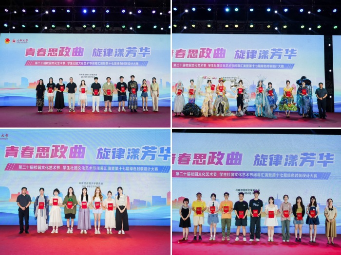 各二級學院的模特身著自行設計的服裝作品,在絢麗的舞臺上盡情展示風采,傳遞對自然之美的敬意和對可持續時尚的追求。現場評委對各團隊的表現進行綜合打分,評選出優秀模特獎、優秀服裝設計獎、最佳表演獎及優秀團隊獎。
