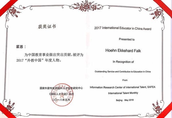 Herr Prof. H?hn von unserer Universit?t gewinnt die Auszeichnung—— ?ausl?ndische Lehrer in China"