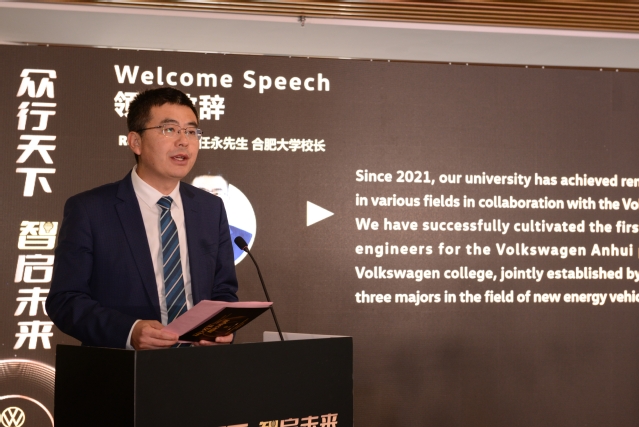 任永表示,合肥大學作為最早探索雙元制高等教育改革的高校之一,秉持開放創新、合作共贏理念,優化學科專業布局,深化產教城融合發展,探索雙元制高等教育“合肥模式”,培養“家門口的工程師”。自2021年起,學校與大眾集團合作建設大眾學院,培養大眾安徽先導中心首批種子工程師,培訓了一批“雙能型”教師團隊,助力安徽首位產業發展。新能源汽車之旅體驗中心將為大眾學院的學生和大眾集團的員工提供全新的學習和體驗平臺,幫助他們直觀感受汽車文化魅力,了解新能源汽車技術發展趨勢,培養創新思維和實踐能力。