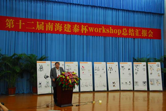 本屆工業(yè)設(shè)計(jì)workshop項(xiàng)目,由中、德、韓三所高校45名工業(yè)設(shè)計(jì)專業(yè)學(xué)生參加,混合編為9個(gè)組;合肥學(xué)院、德國漢諾威應(yīng)用科學(xué)大學(xué)、韓國韓巴大學(xué)的專業(yè)教師和工程師現(xiàn)場指導(dǎo)。本屆活動(dòng)的主題,是為廣東省佛山市南海建泰鋁制品有限公司設(shè)計(jì)一款造型新穎、方便適用的“老人助行器”。在為期十天的活動(dòng)期內(nèi),各組學(xué)生在老師的指導(dǎo)下,要按照委托方南海建泰公司的要求,認(rèn)真進(jìn)行構(gòu)思、設(shè)計(jì),反復(fù)進(jìn)行研討、比較,每組拿出兩套“老人助行器”設(shè)計(jì)方案,再經(jīng)過在大會(huì)上進(jìn)行中期陳述、最終陳述和專家評審,評出一等獎(jiǎng)、創(chuàng)意獎(jiǎng)和優(yōu)秀獎(jiǎng)。南海建泰公司從學(xué)生獲獎(jiǎng)方案中,遴選最優(yōu)設(shè)計(jì)方案,并吸納其它方案之長,形成新的一款“老人助行器”設(shè)計(jì)方案,供生產(chǎn)一線研究使用。對所有獲獎(jiǎng)項(xiàng)目,建泰公司都將給予獎(jiǎng)勵(lì)。