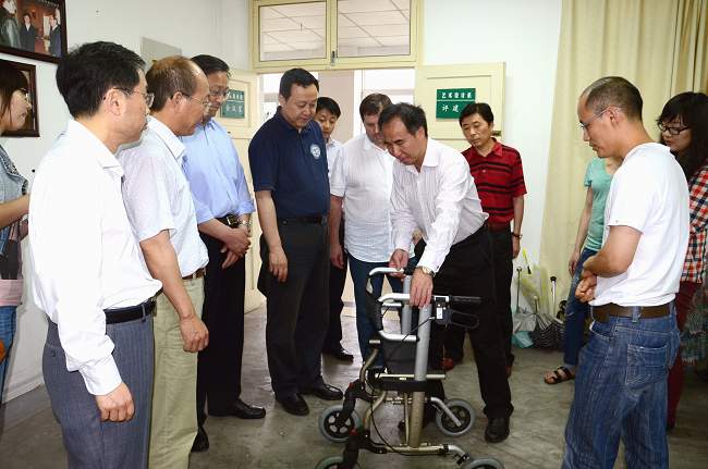 程藝廳長查看老人助行器樣品 陶登松書記為一等獎(jiǎng)獲得者頒獎(jiǎng)