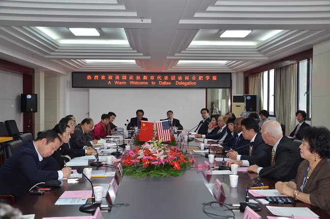 隨后,達拉斯市經濟發展局局長沈尹發表講話。他說,達拉斯市是一個高科技城市,有著“硅谷第二”的稱呼,還有非常著名的醫學院、商學院等,合作展開后,留美交流的學生可以得到更好的教育和工作。他希望雙方能盡快開展合作交流計劃,更多的交流才有更多的進步。鐘開瑞向在座各位介紹了達福地區臺灣商會的基本情況,達福地區臺灣商會主要致力于與大陸做經貿、文化教育等交流,并籌集資金用于資助國際交換學生及其它等活動,并希望能夠為合肥學院與達拉斯市的合作提供幫助。會議上,雙方就合作交流問題展開討論,會議氣氛和諧融洽。