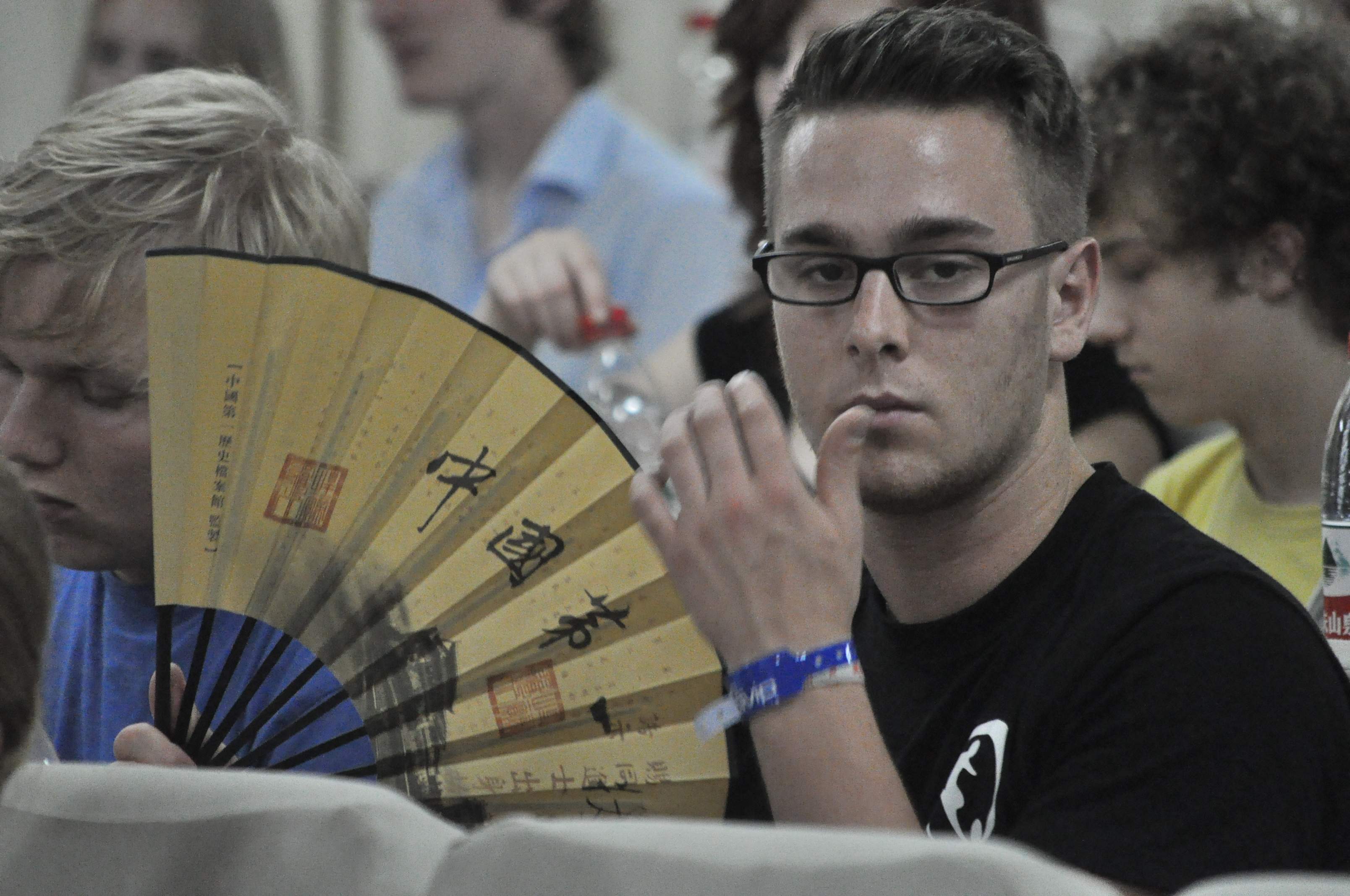 李明陽總督學向德國中學生贈送《楹聯手抄》 一把印有“中國第一”的折扇成為德國中學生的最愛