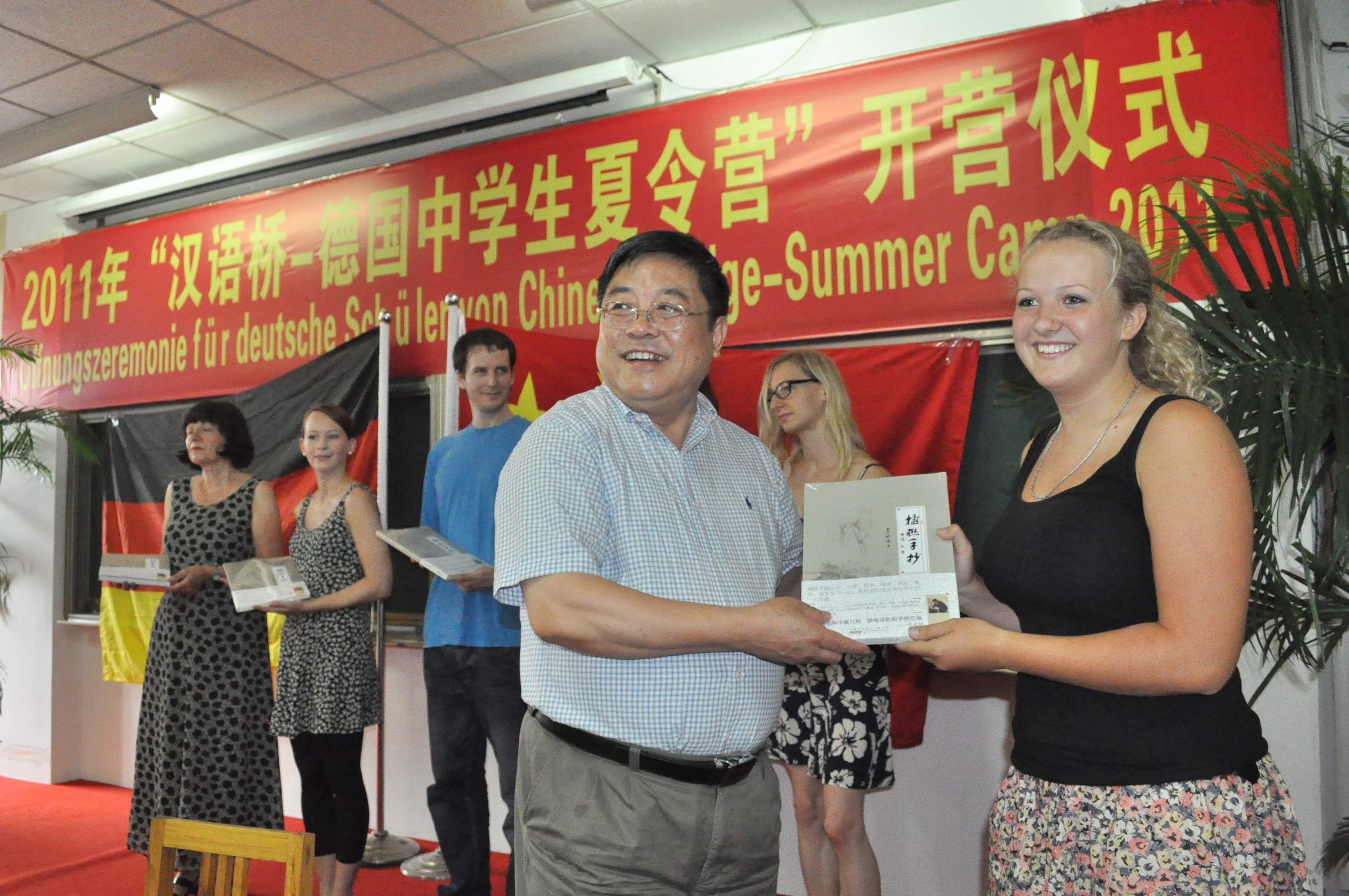 安徽省教育廳總督學李明陽向德國中學生表示歡迎和問候,希望來訪的德國孔子學院的師生們能夠親自觸摸中國、感受中國,學習更多的中國傳統文化、交更多的中國朋友。李明陽總督學現場還向德國師生們贈送了他新近出版的書法集《楹聯手抄》,并詳細介紹了中國的楹聯文化知識。德國孔子學院中方院長胡春春則鼓勵德國學生們用心感受中國文化,親身體驗中國,感受中國之美。德國北威州教育部官員在發言中表示,中國是個美麗的國家,這次中國之旅將一定是段難忘的美好時光。