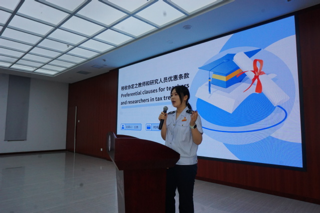 活動中,稅務(wù)干部解讀了稅收協(xié)定基本概念、作用及與高校師生相關(guān)的個稅、企稅優(yōu)惠政策等,分享了跨境涉稅典型案例,并通過互動問答、現(xiàn)場咨詢?yōu)閹熒鹨山饣螅l(fā)放宣傳資料。