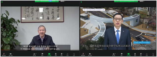 1130日,由合肥學院主辦、韓國順天鄉大學承辦的第七“合肥學院杯”漢語演講大賽在韓國順天鄉大學成功舉辦來自韓國釜山外國語高中、釜山觀光高中和仁川圣源高中等12所高中院校的韓國學生參賽,18名選手進入決賽。黨委書記王其東和韓國順天鄉大學校長金承禹通過視頻參加決賽開幕式并致辭。