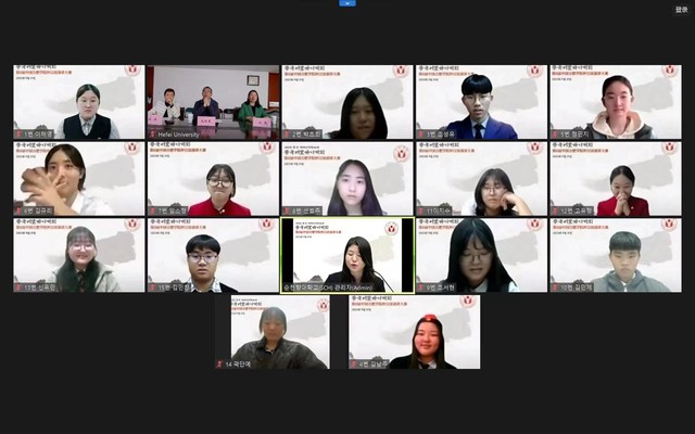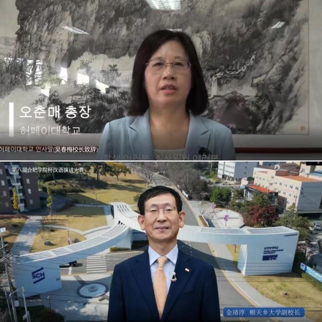 117日,由合肥學(xué)院主辦、韓國順天鄉(xiāng)大學(xué)承辦的第七屆合肥學(xué)院杯漢語演講大賽在韓國順天鄉(xiāng)大學(xué)成功舉辦。來自順天鄉(xiāng)高中、仁川世元高中等多所學(xué)校的韓國學(xué)生參賽,最終有15名選手進(jìn)入決賽。校長吳春梅和韓國順天鄉(xiāng)大學(xué)副校長金淳通過視頻參加決賽開幕式并致辭。