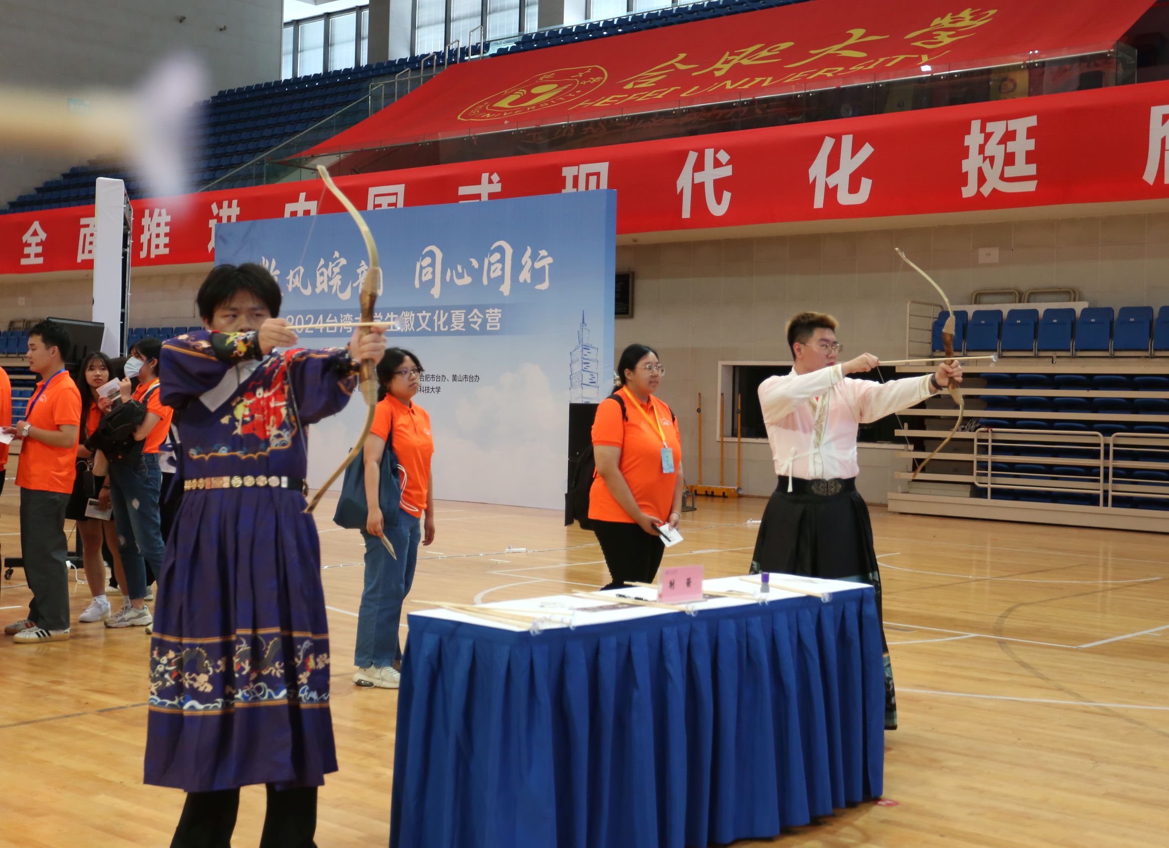 75日,為促進海峽兩岸青年學生交流,我校在體育館舉辦2024皖臺大學生徽文化夏令營傳統文化體驗營活動。黨委委員、副校長白義香出席活動并致辭,皖臺交流協會領導、黨委宣傳部部長賈峰、港澳臺辦公室主任張慧,以及銘傳大學、云林科技大學、東海大學、東華大學、安徽農業大學、合肥師范學院、我校師生參加活動。