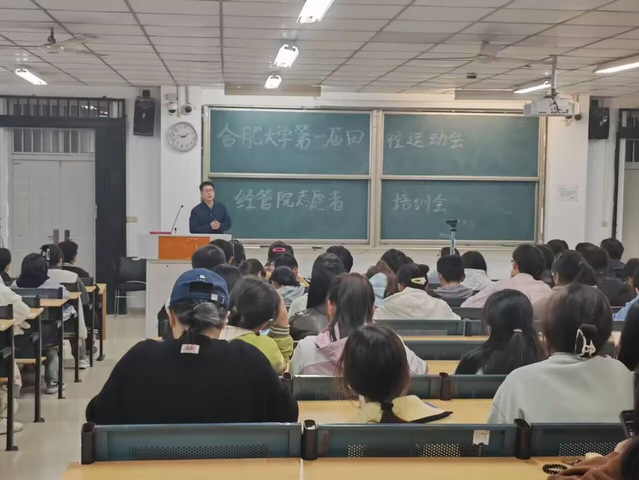為了做好運(yùn)動(dòng)會(huì)的后勤保障工作,讓運(yùn)動(dòng)員以更加飽滿的精神面貌參加運(yùn)動(dòng)會(huì),2024年10月24日晚,經(jīng)濟(jì)與管理學(xué)院志愿者培訓(xùn)會(huì)在一期4-107教室召開,合肥大學(xué)經(jīng)濟(jì)與管理學(xué)院第一屆團(tuán)委學(xué)生會(huì)全體成員到場(chǎng)參加。