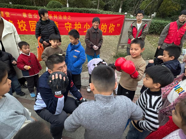 11月29日下午,為提高孩子們對“校園霸凌”的認知,培養(yǎng)孩子們的自我保護意識,經(jīng)管學院學生志愿者攜手社區(qū)志愿者在綠地濱湖國際花都小區(qū)里開展了一次“拒絕校園霸凌,守護少年的你”拳擊課堂。