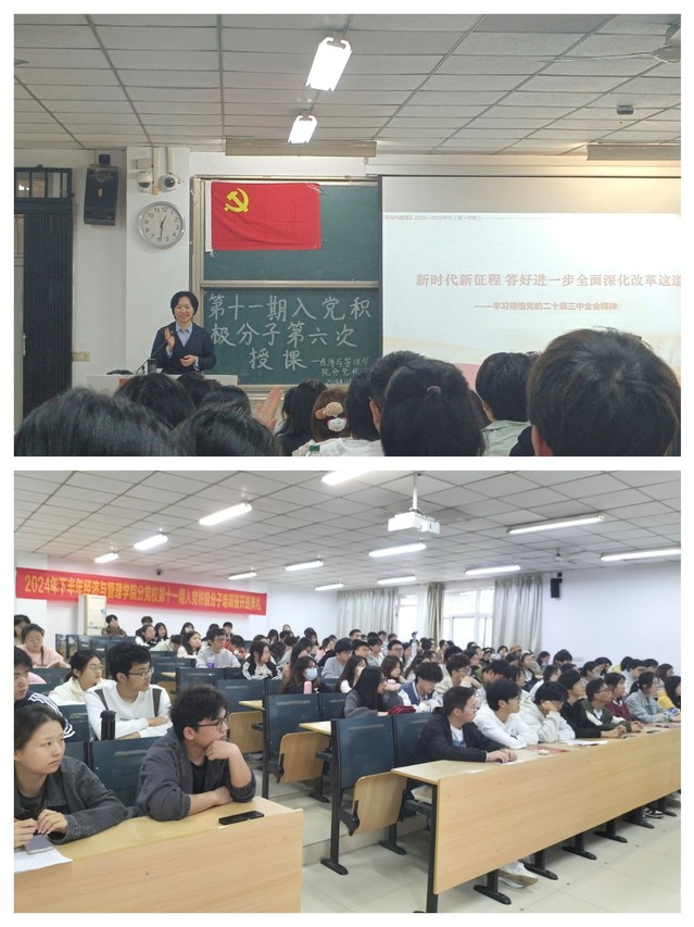 為深入學(xué)習(xí)宣傳黨的二十大和二十屆三中全會(huì)精神,不斷推動(dòng)黨的最新理論入腦入心,2024年11月15日中午,經(jīng)濟(jì)與管理學(xué)院分黨校第十一期入黨積極分子培訓(xùn)班第六課在一期4棟107教室進(jìn)行。馬克思主義學(xué)院形勢(shì)與政策教研室主任閃茜菁擔(dān)任主講人。經(jīng)濟(jì)與管理學(xué)院第十一期入黨積極分子培訓(xùn)班全體學(xué)員參加學(xué)習(xí)。