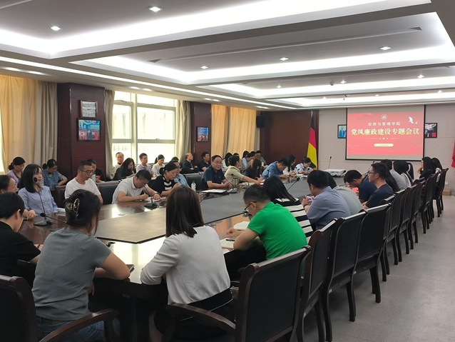 9月24日下午,合肥大學經濟與管理學院于一期7棟二樓東會議室召開了師德師風及黨風廉政建設專題會議。本次會議由經濟與管理學院院長陳江華主持,全體教職工參加會議。