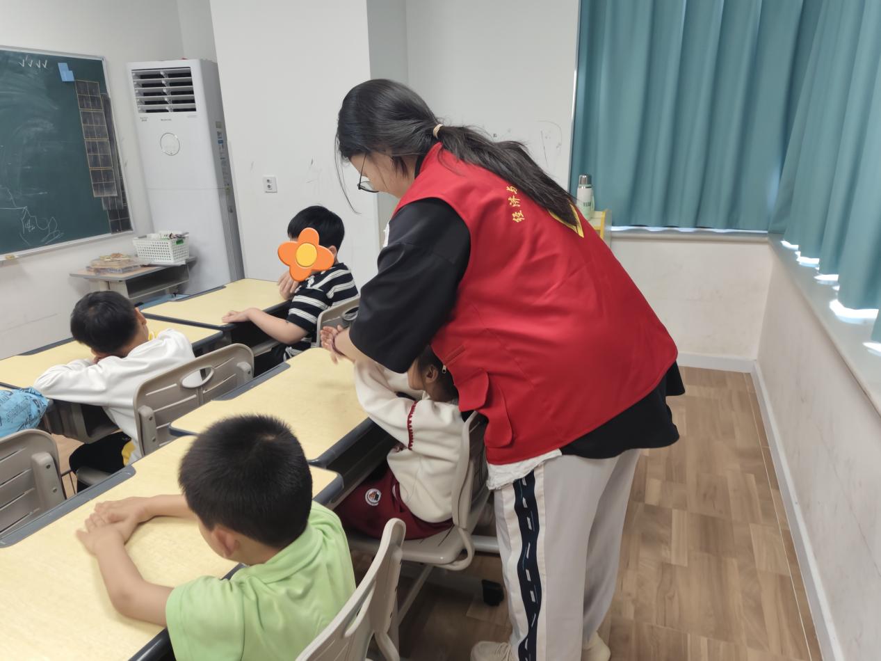 在園長的精心安排下,志愿者們迅速分組融入各個班級,與教師們攜手合作,共同開展豐富多彩的課程教學。生活自理課上,志愿者們耐心協助教師,引導小朋友們學習盛湯技能,通過實際操作反復強化他們的認知,幫助孩子們在日常生活中邁出獨立自主的堅實一步;專注力訓練課環節,志愿者們默契配合教師發放卡片,引導小朋友們專注地進行連線,并小心翼翼地沿著黑線剪下卡片上的圖案,在這個過程中,孩子們的手眼協調能力得到有效鍛煉,而志愿者們也用耐心與關愛為孩子們的學習之路添磚加瓦。