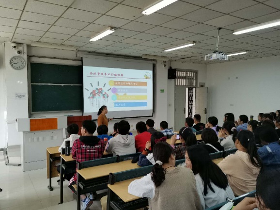 活動第一項:10月9日上午進行專業介紹及師生見面會。胡中峰老師、劉征老師分別就物流管理專業和供應鏈管理專業向新生做相應介紹,專業任課教師分別向學生做自我介紹,就大學生活應注意的各種事項作對應說明,回答學生在生活和學習方面的提問,針對未來的大學生活每位老師也給出了新生寄語。