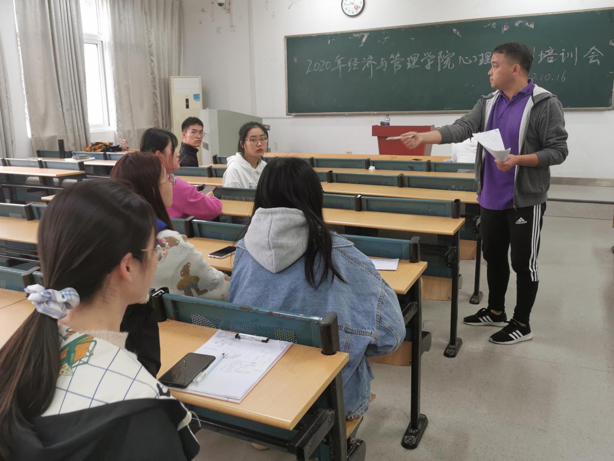 20201016日,經濟與管理學院心理知識培訓會于我校一區博學樓C101教室順利召開,經濟與管理學院李發俊老師及所有班級的心理委員參加了此次會議。